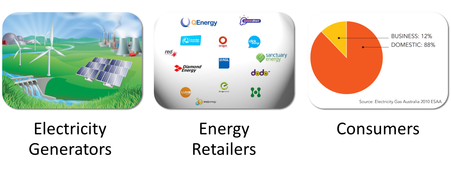 The National Energy Market (NEM) is the wholesale framework that generators and retailers use to trade electricity in Australia. We typically have the generators selling electricity to the retailers at a market price which is updated every hour. The retailers then hedge against the market, to distribute electricity to the consumers at a static price.